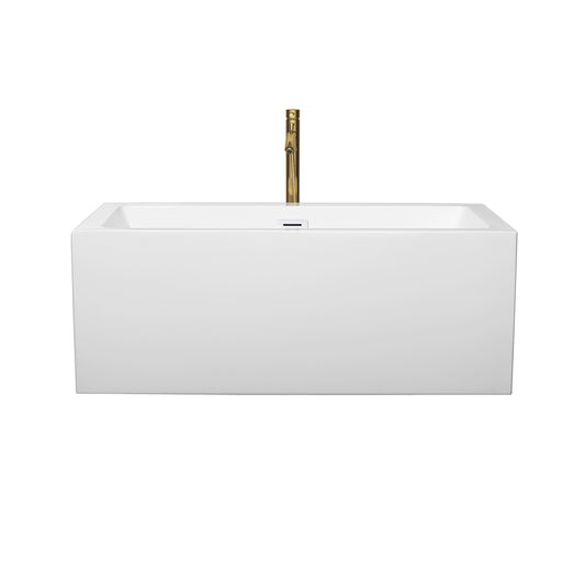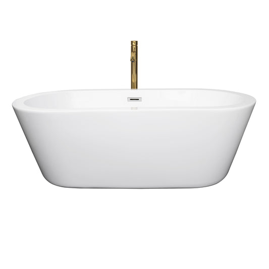 Melody 60" Freestanding Bathtub in White, White Trim, Faucet in Brushed Gold