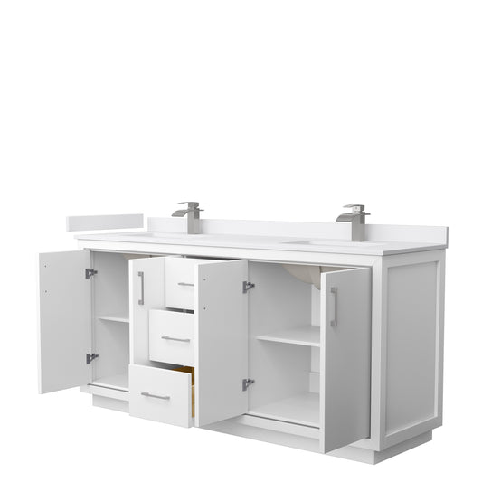 Icon 72" Double Vanity in White, White Cultured Marble Top, Nickel Trim