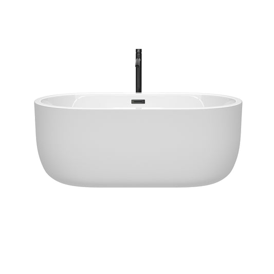Juliette 60" Freestanding Bathtub in White, Shiny White Trim, Faucet in Black