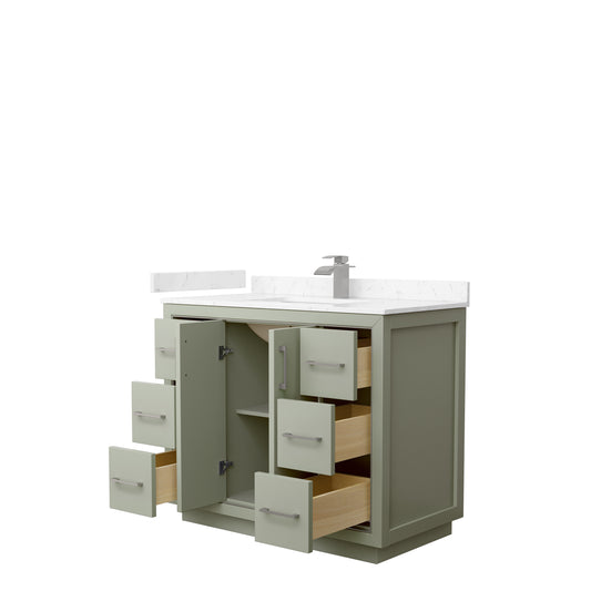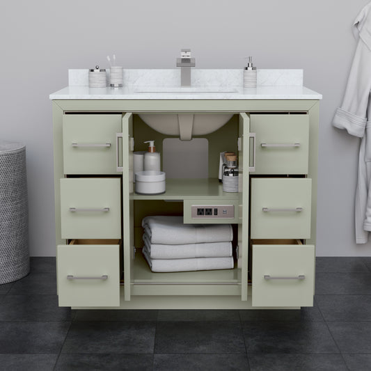 Icon 42" Single Vanity in Light Green, Carrara Cultured Marble Top, Nickel Trim
