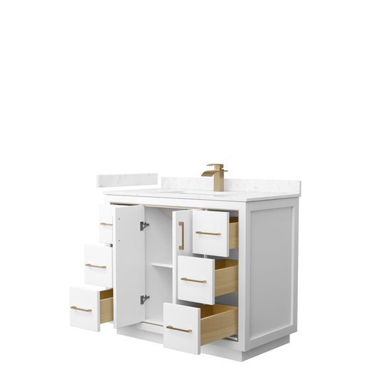 Icon 42" Single Vanity in White, Carrara Cultured Marble Top, Bronze Trim