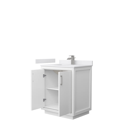 Icon 30" Single Vanity in White, White Cultured Marble Top, Nickel Trim
