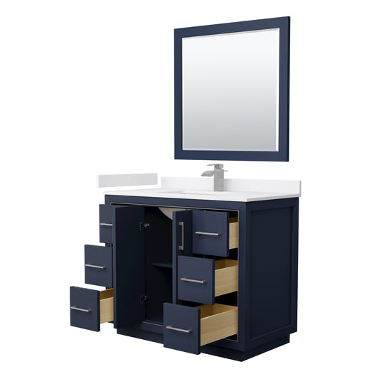 Icon 42" Single Vanity in Dark Blue, Top, Square Brushed Nickel Trim, 34" Mirror