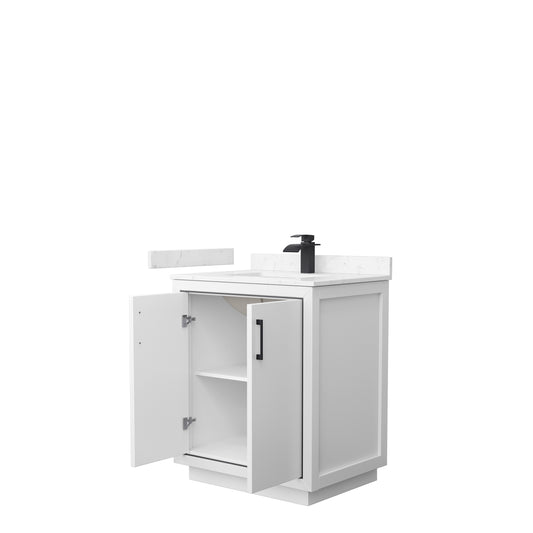 Icon 30" Single Vanity in White, Carrara Cultured Marble Top, Black Trim
