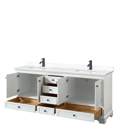 Deborah 80" Double Vanity in White, Top, Square Sinks, Matte Black Trim