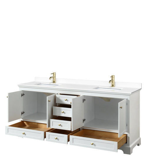 Deborah 80" Double Vanity in White, Top, Square Brushed Gold Trim, No Mirrors