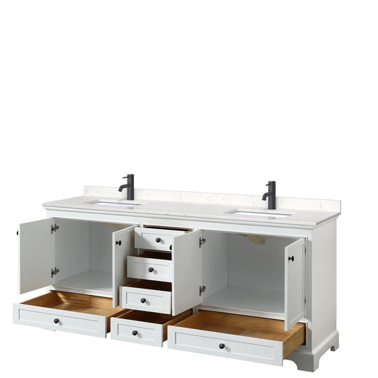 Deborah 80" Double Vanity in White, Carrara Cultured Marble Top, Black Trim