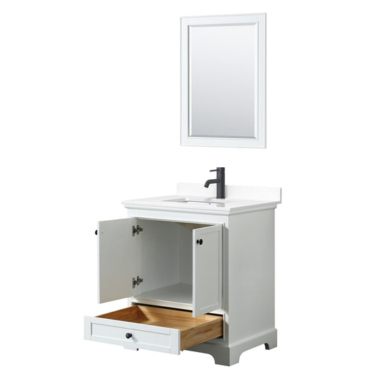 Deborah 30" Single Vanity in White, Top, Square Matte Black Trim, 24" Mirror