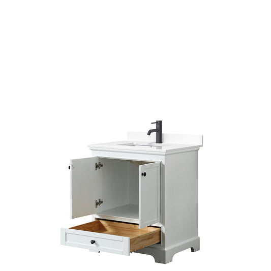 Deborah 30" Single Vanity in White, Top, Square Sink, Matte Black Trim