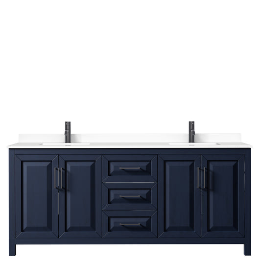 Daria 80" Double Vanity in Dark Blue, White Cultured Marble Top, Black Trim