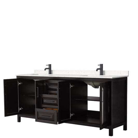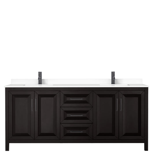 Daria 80" Double Vanity in Dark Espresso, White Cultured Marble Top, Black Trim