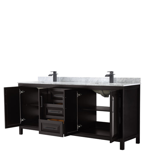 Daria 80" Double Vanity in Dark Espresso, Carrara Marble Top, Black Trim