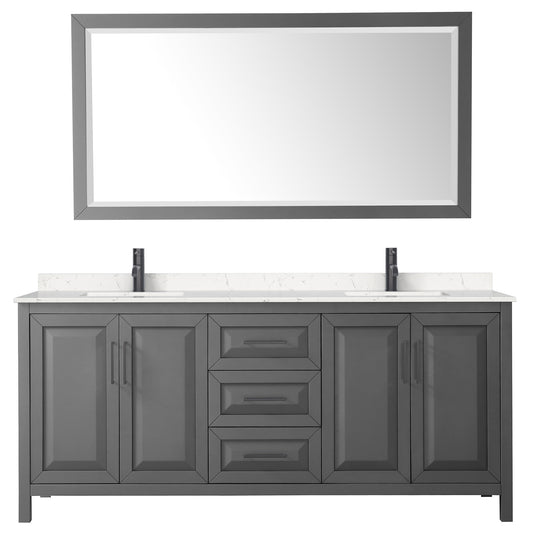 Daria 80" Double Vanity in Dark Gray, Carrara Marble Top, Black Trim, 70" Mirror