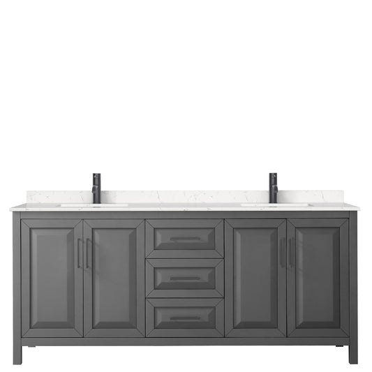 Daria 80" Double Vanity in Dark Gray, Carrara Cultured Marble Top, Black Trim
