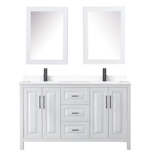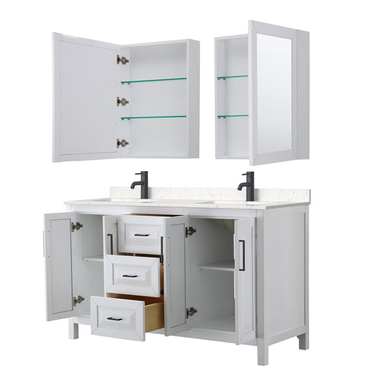 Daria 60" White Double Vanity, White Marble Top, Black Trim, Medicine Cabinets