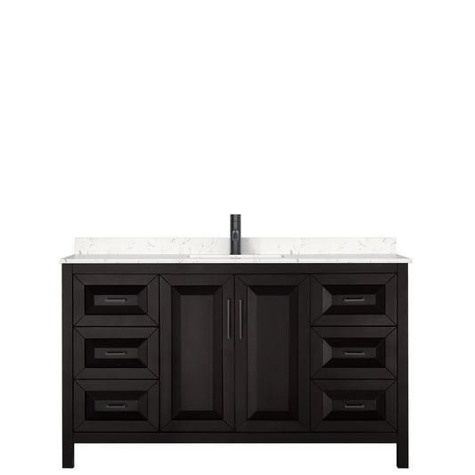 Daria 60" Single Vanity in Dark Espresso, Top, Square Sink, Matte Black Trim