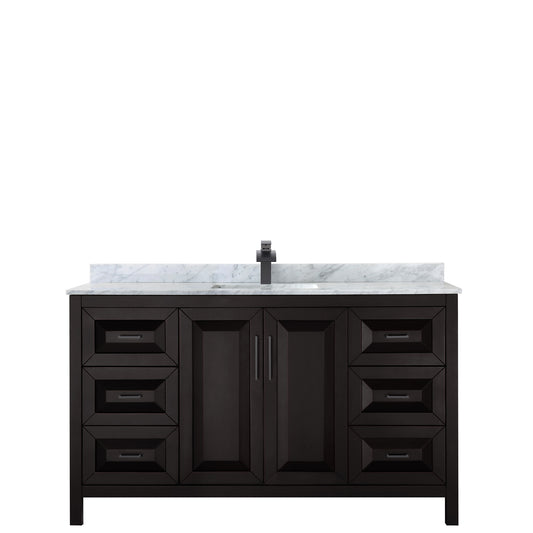 Daria 60" Single Vanity in Dark Espresso, Carrara Marble Top, Black Trim