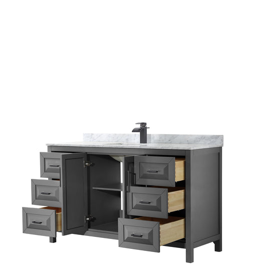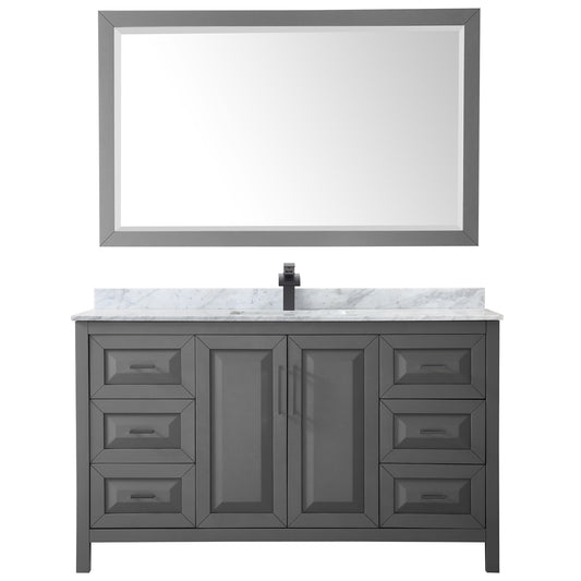 Daria 60" Single Vanity in Dark Gray, Carrara Marble Top, Black Trim, 58" Mirror