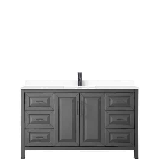Daria 60" Single Vanity in Dark Gray, White Cultured Marble Top, Black Trim