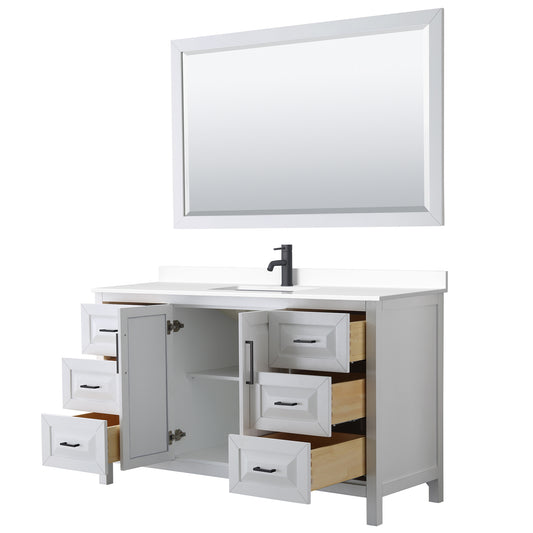 Daria 60" Single Vanity in White, Top, Square Sink, Matte Black Trim, 58" Mirror