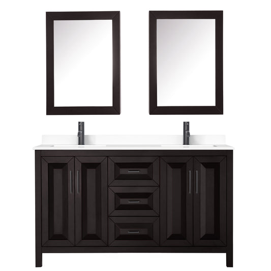 Daria 60" Espresso Double Vanity, White Marble Top, Trim, Medicine Cabinets