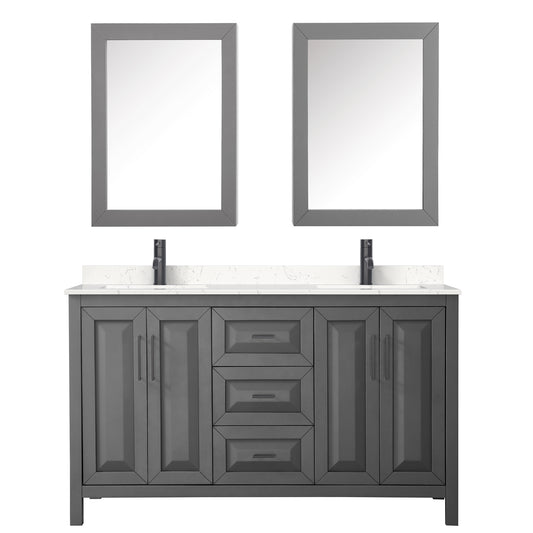 Daria 60" Gray Double Vanity, Carrara Marble Top, Black Trim, Medicine Cabinets