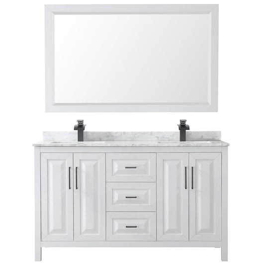 Daria 60" Double Vanity in White, White Marble Top, Black Trim, 58" Mirror