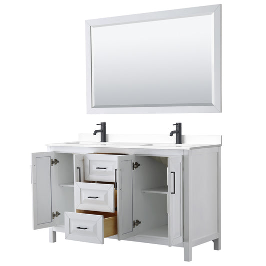 Daria 60" Double Vanity in White, Top, Square Sinks, Matte Black Trim