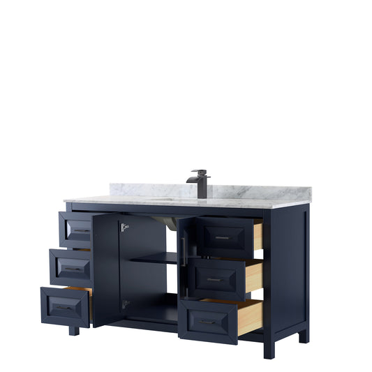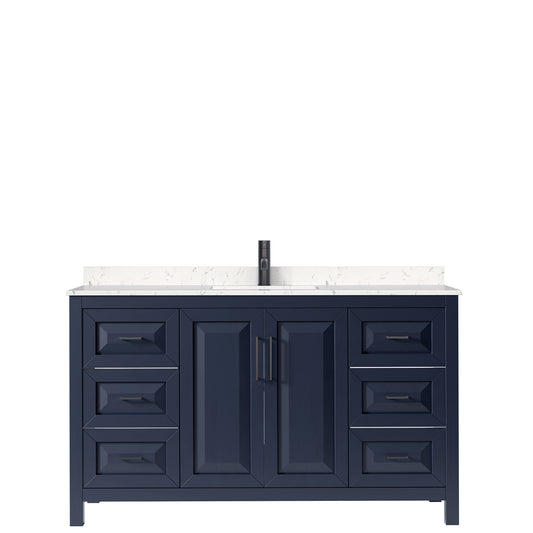 Daria 60" Single Vanity in Dark Blue, Carrara Cultured Marble Top, Black Trim