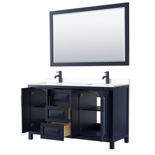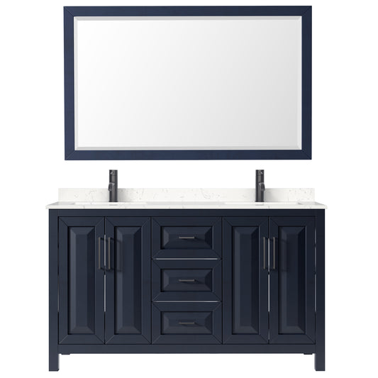 Daria 60" Double Vanity in Dark Blue, Carrara Cultured Marble Top, Black Trim