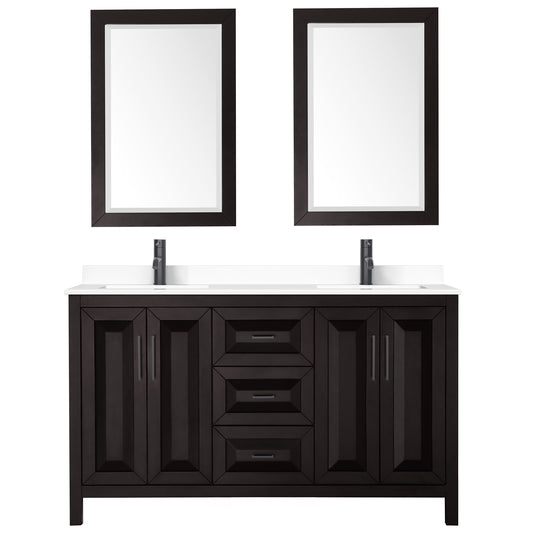 Daria 60" Dark Espresso Double Vanity, White Marble Top, Black Trim, 24" Mirrors