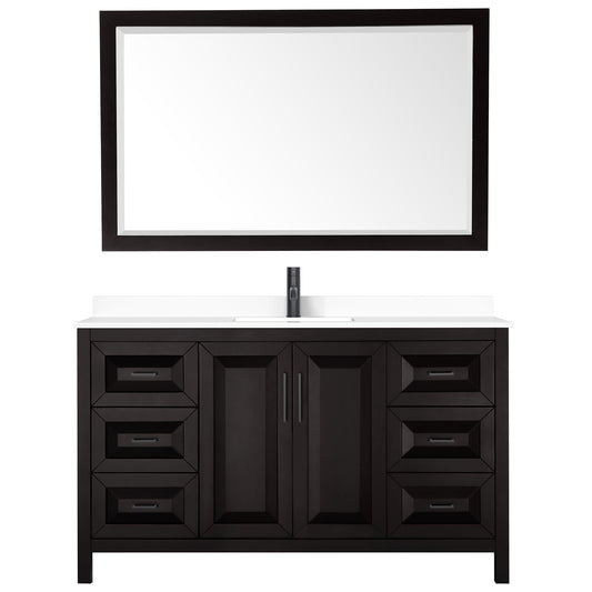 Daria 60" Dark Espresso Single Vanity, White Marble Top, Black Trim, 58" Mirror