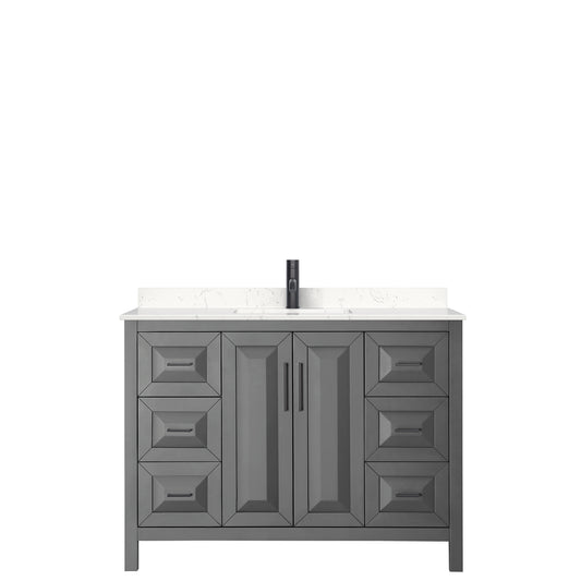 Daria 48" Single Vanity in Dark Gray, Carrara Cultured Marble Top, Black Trim
