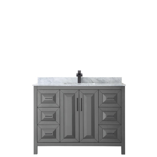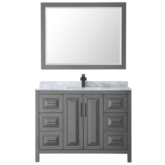 Daria 48" Single Vanity in Dark Gray, Carrara Marble Top, Black Trim, 46" Mirror
