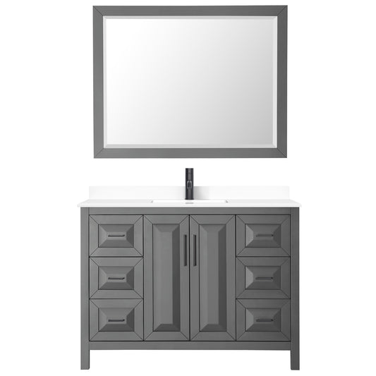 Daria 48" Single Vanity in Dark Gray, Top, Square Matte Black Trim, 46" Mirror
