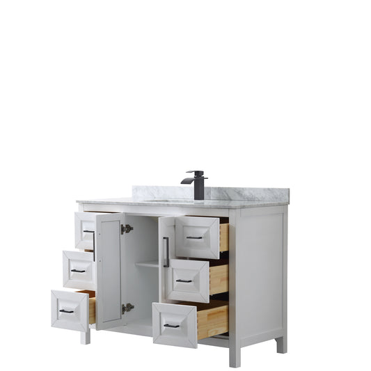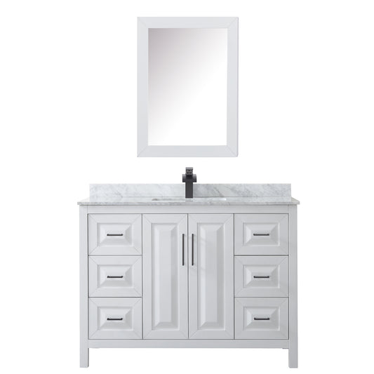 Daria 48" Single Vanity in White, Carrara Marble Top, Black Trim, 46" Mirror
