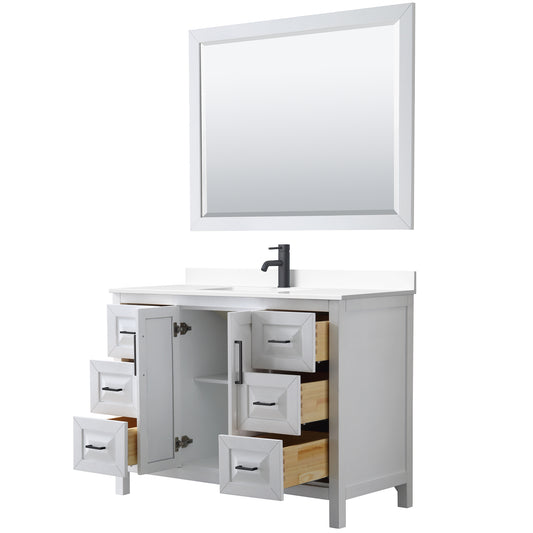 Daria 48" Single Vanity in White, Top, Square Sink, Matte Black Trim, 46" Mirror