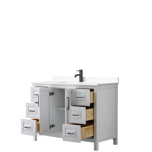 Daria 48" Single Vanity in White, Top, Square Sink, Matte Black Trim