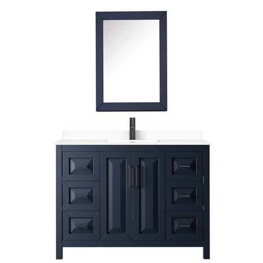 Daria 48" Single Vanity in Dark Blue, Top, Square Matte Black Trim, 46" Mirror