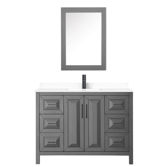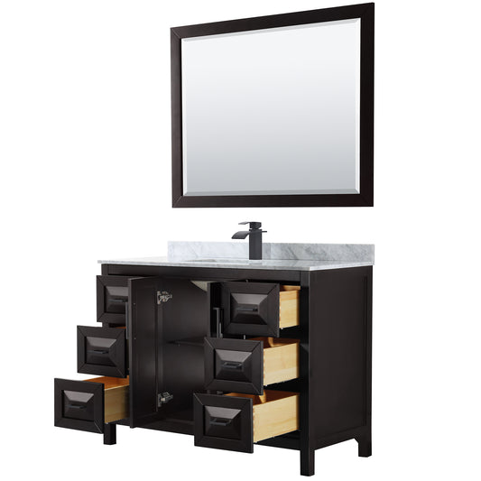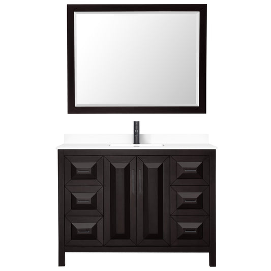 Daria 48" Dark Espresso Single Vanity, White Marble Top, Black Trim, 46" Mirror