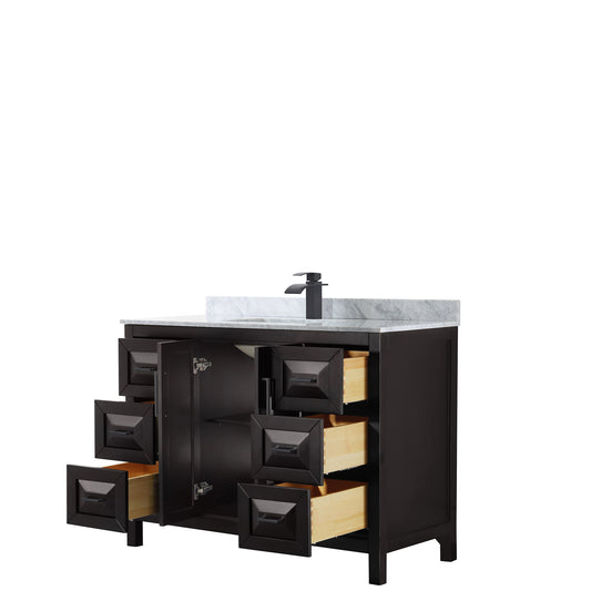 Daria 48" Single Vanity in Dark Espresso, Carrara Marble Top, Black Trim