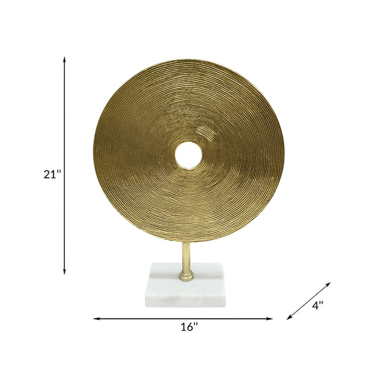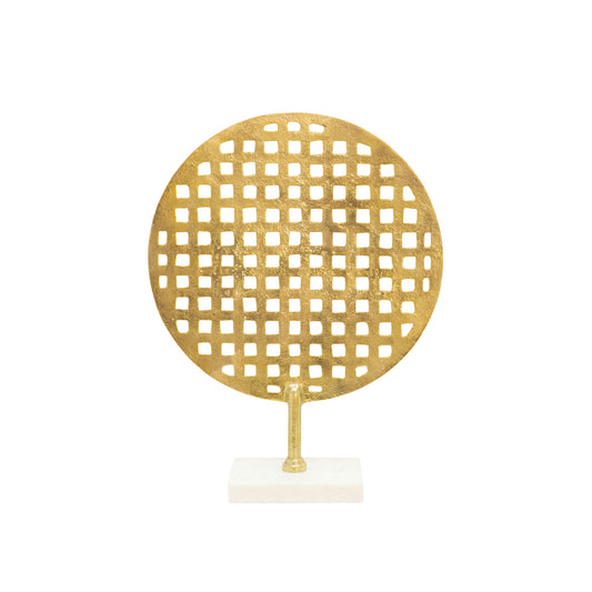 18" Metal Round Mesh Deco On Marble Base, Gold