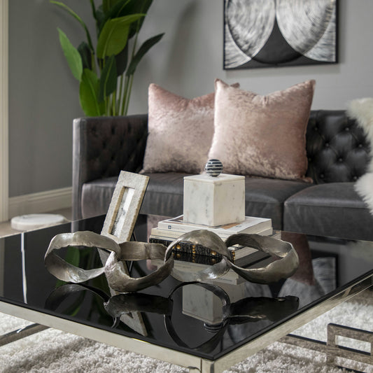 18" Metal Round Mesh Deco On Marble Base, Silver