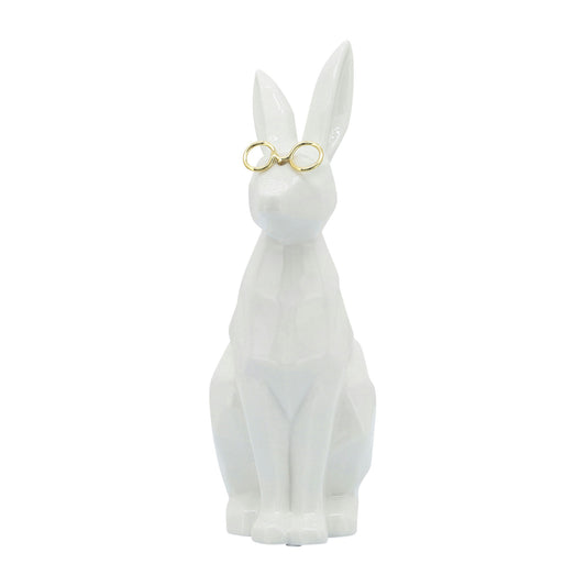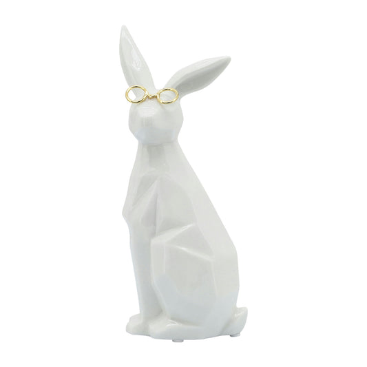 Cer, 9"h Bunny W/ Glasses, White/gold