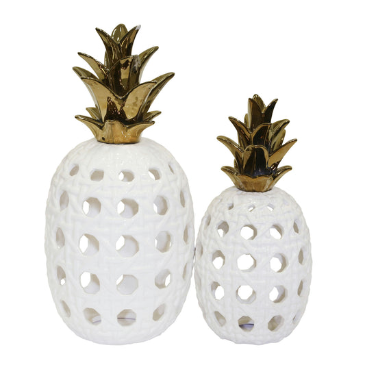 Ceramic 13" Lattice Weave Pineapple, White / Gold