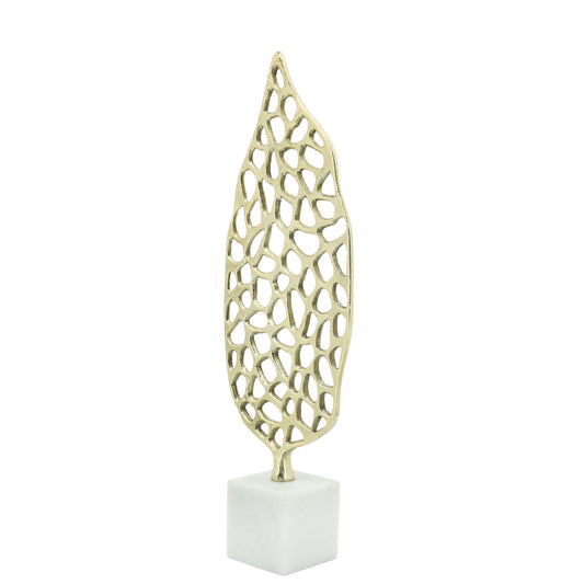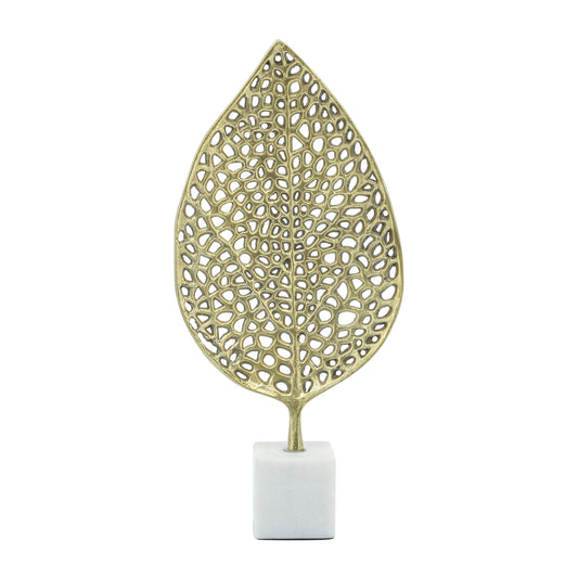 Metal, 19"h Cut-out Leaf On Stand, Gold