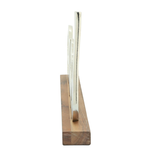 Sold outMetal, 16" Love On Wood Base, Silver
