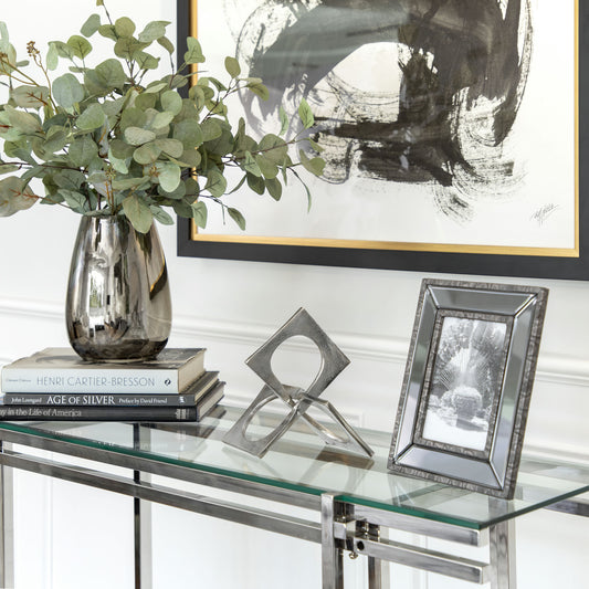 Sold outMetal 9" Linked Square Decor, Silver
