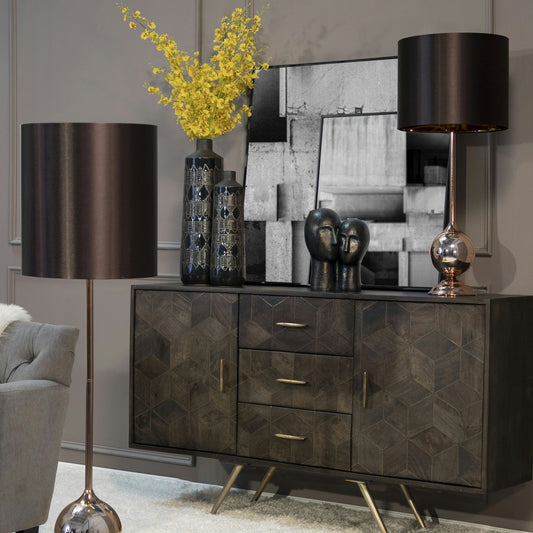 Metal/marble, 21"h Double Ring Accent, Gold