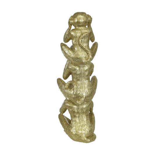 Polyresin 12" Stacking Monkeys Deco, Gold